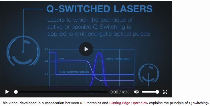 MONTAGE Q-switch passif avec absorbant saturable. Un absorbant saturable passif est un composant optique avec une certaine perte optique, qui est réduite à des intensités optiques élevées. Cela peut se produire, par exemple, dans un milieu avec des ions dopants absorbants, lorsqu'une forte intensité optique conduit à une déplétion de l'état fondamental de ces ions. Des effets similaires peuvent se produire dans les semi-conducteurs, où l'excitation des électrons de la bande de valence dans la bande de conduction réduit l'absorption pour les énergies des photons juste au-dessus de l'énergie de la bande interdite.