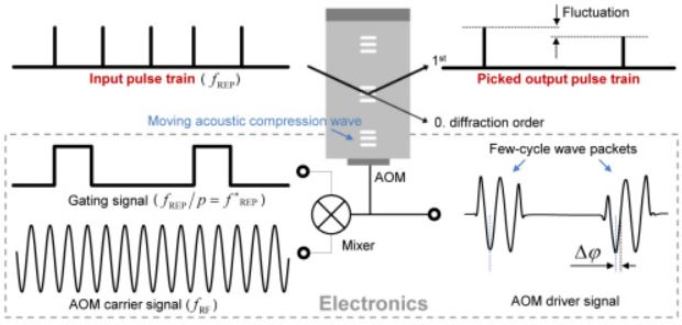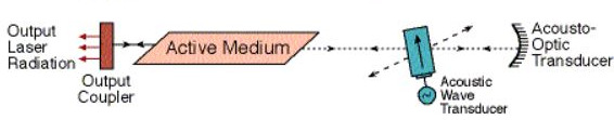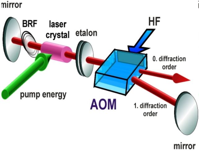 Un modulateur acousto-optique (AOM) est un dispositif qui peut être utilisé pour contrôler la puissance, la fréquence ou la direction spatiale d'un faisceau laser avec un signal de commande électrique. Il est basé sur l'effet acousto-optique, c'est-à-dire la modification de l'indice de réfraction par la pression mécanique oscillante d'une onde sonore. L'AOM, appelé Q switch, sert alors à bloquer le résonateur laser avant que l'impulsion ne soit générée. Dans la plupart des cas, le faisceau d'ordre zéro (non diffracté) est utilisé dans des conditions d'effet laser, et l'AOM est activé lorsque l'émission laser doit être interdite. Cela nécessite que les pertes de diffraction provoquées (éventuellement pour deux passages par aller-retour du résonateur) soient plus élevées que le gain du laser.