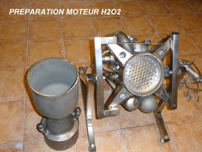d'eau et oxygène à 740 degrés celsius. Ce propulseur sera monté sur la voiture fusée "PEROXIDE THUNDER"