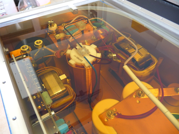 Dans le 2 ème compartiment se trouve toute l'intendance et la gestion du compresseur de pulse à savoir, une pompe de circulation de l'huile silicone à travers les différents éléments à refroidir, selfs,condensateurs etc..