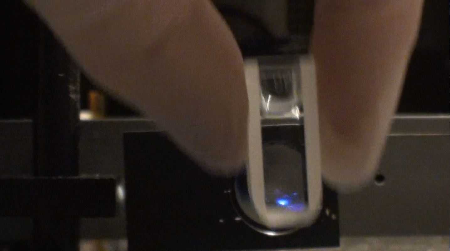 J'ai obtenu le claquage diélectrique du sulfure de carbone liquide avec le laser MOPALITE MOPA600S qui émet en limite de diffraction TEM00. Avec une lentille de focale 40mm j'obtiens un spot au foyer de 16 microns. Soit un flux de 4.1012W/cm2. Le seuil pour obtenir le claquage diélectrique dans le sulfure de carbone est de 0.1mJ et la laser MOPA600S donne 0.30mJ