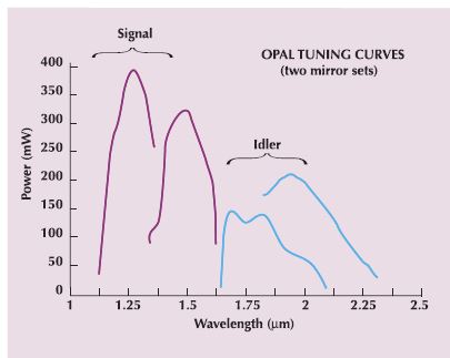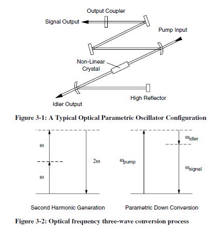 Les oscillateurs paramétriques optiques ( OPO ) ont été utilisés pour la première fois au milieu des années 1960, une alternative aux lasers à colorants permettant d'élargir le spectre de fréquence surtout dans l'infrarouge.