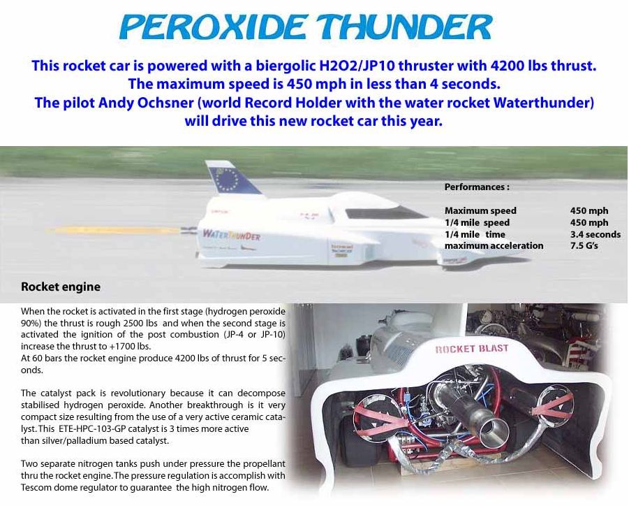 PEROXIDE THUNDER se trouve être le chassis de WATERTHUNDER sur lequel j'ai monté une fusée biergolique 3 tonnes de poussée.