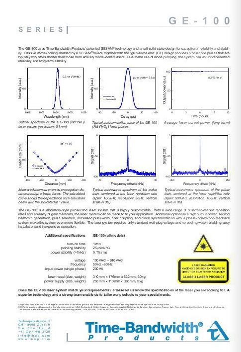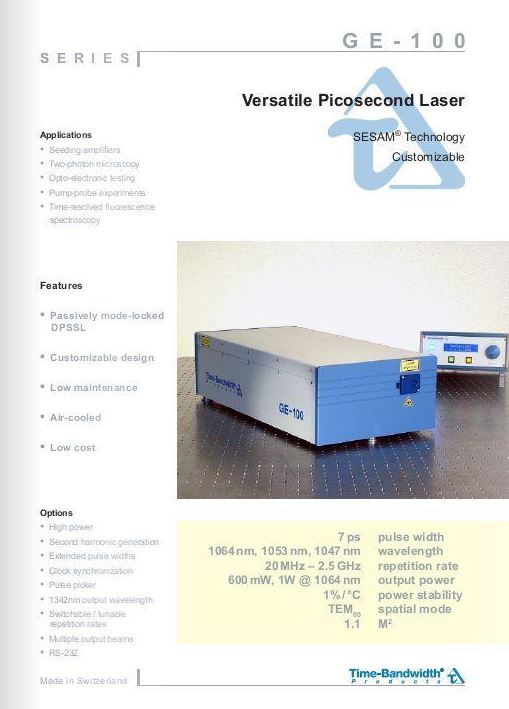 Laser oscillateur picoseconde utilisant un cristal Nd:vanadate pompé par une diode laser de 2.2W continue à 808nm. Le couplage des modes longitudinaux est obtenu au moyen d'un miroir SESAM. La fréquence de répétition dépend de la longueur de la cavité laser et celle-ci peut-être réglée entre 20MHz et 2.5GHz.