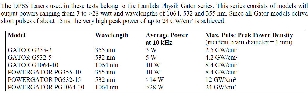 Voici la distribution d'énergie à la sortie du Power Gator et puissance en W/cm2 que l'on peut obtenir en focalisant le Power Gator qui se prête bien pour la réalisation d'expérience d'optique non-linéaire.