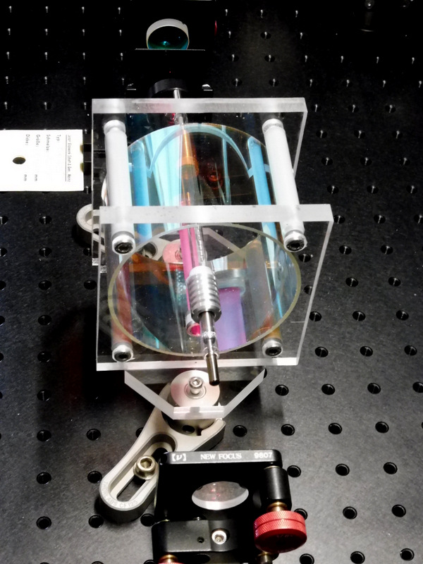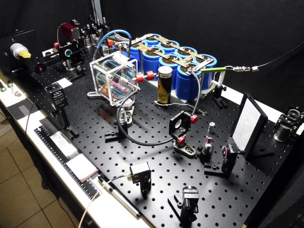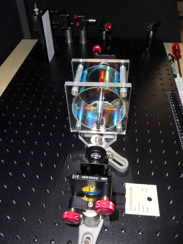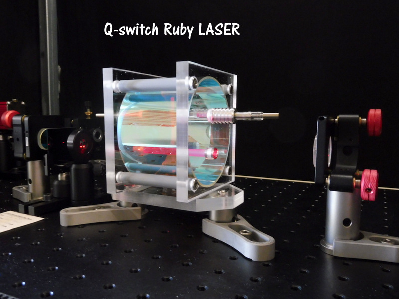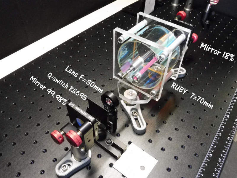 Plusieurs agencement vont être réalisés : mode relaxé ( 2-3 ms) ,mode déclenché avec filtre SCHOTT RG695 (20ns), mode déclenché +miroir rotatif (8ns), mode déclenché avec colorant saturable comme vert de Malachite ou Cryptocyanine (15ns), mode déclenché miroir rotatif uniquement (50ns), modes blockés (20ps)