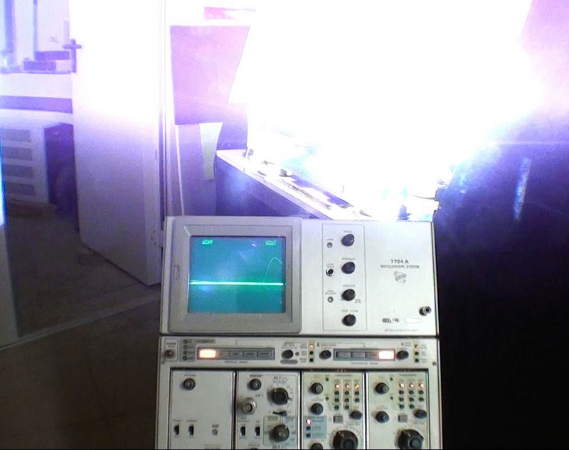 Mesure de la durée de l'éclair flash au moyen d'une photodiode et d'un oscilloscope Tektronix 7704
