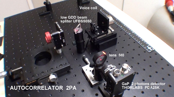 Heureusement, depuis de nombreuses années les spécialistes du domaine femtoseconde ont développés des instruments capables de contourner ce problème. L'une des premières méthodes à avoir été utilisée est l'autocorrélation optique (AC), c'est cette méthode que nous allons mettre en oeuvre ici. Elle présente l'avantage d'une relative simplicité et d'un moindre coût par rapport aux méthodes plus raffinées d'aujourd'hui, telles que les FROG, SPIDER, SPIRIT, RABBIT… et autres instruments aux noms bizarres. Par contre elle présente l’inconvénient de ne pas donner accès à toute l'information, notamment à la phase temporelle de l'impulsion qui est perdue lors de la mesure, et donc de ne pas être en mesure de caractériser l'évolution temporelle précise de cette impulsion. Cela dit l'autocorrélation optique interférométrique reste une méthode de base qui donne des résultats satisfaisants en première approximation. La société THORLABS allemagne s'est proposée de nous fournir les composants optiques et détecteurs pour la réalisation de cet autocorrélateur interférométrique.