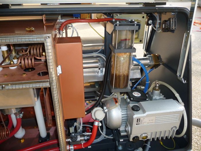 Système de déionisation de l'eau de refroidissement des électrodes de décharges et de la triode. Pompe à vides pour remplacement du gaz après 72 heures de fonctionnement. Mélange 3He/1CO2/1N2/ 5% Xe Pression de travail 70 Torr