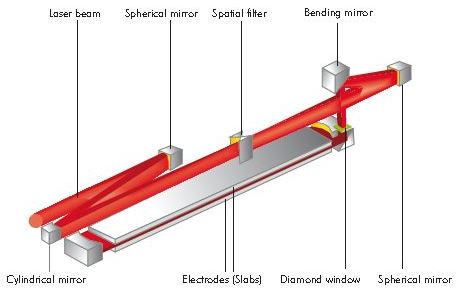 C'est un laser SLAB c'est à dire que la décharge plasma est transversal par rapport à l'axe optique.