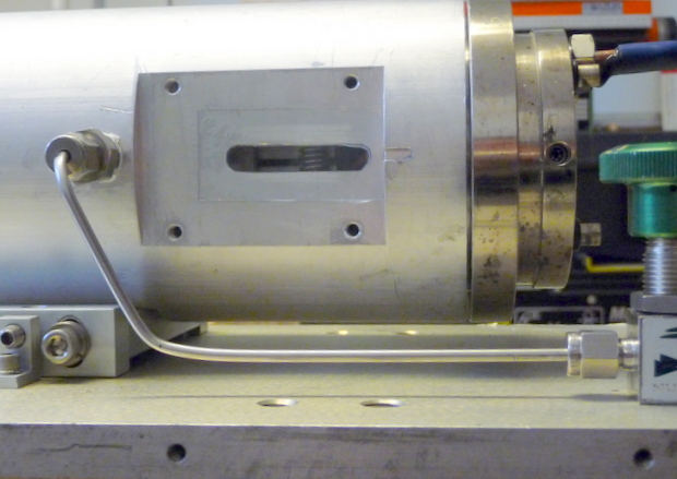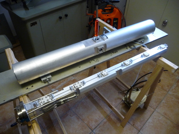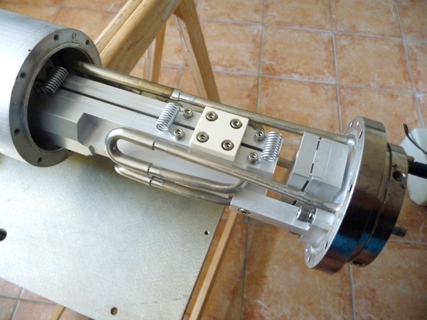 Maintenant je vais usiné une fente longitudinal à la hauteur du gap de 2mm des électrodes de décharge et coller une fenêtre de visualisation pour observer la décharge plasma. Je vais également monté une vanne pour entré le mélange gazeux avec une prise pour mesurer la pression dans le tube puis après ce sera le remontage et les essais avec un générateur de 13 MHz qui délivre 5kW.............. J'ai également commandé de l'indium pour refaire les 2 joints des flasques supportant les miroirs.