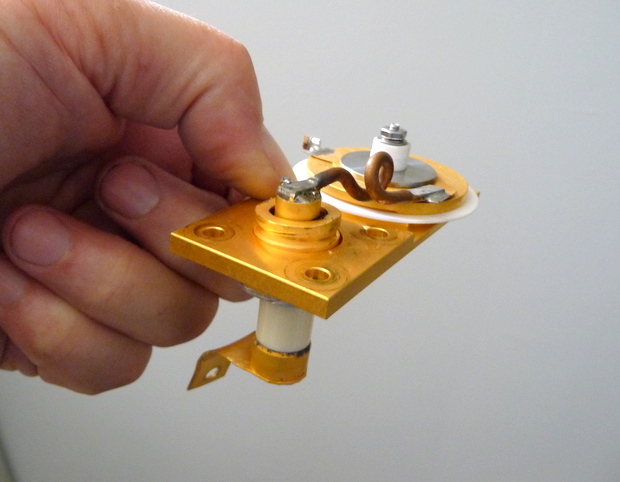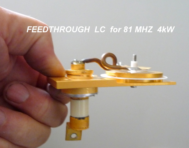 voici le feedthrough (passage de la HF 4kW) venant du cable coaxial et alimentant l'électrode de décharge. Une adaptation de l'impédance au moyen du circuit "LC" une spire de cuivre et une capacité utilisant un disque mince en alumine (Al2O3)