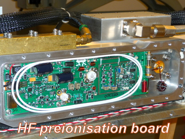 L'amorçage de la décharge plasma à puissance réduite pose des problèmes d'amorçage surtout en régime pulsé. Pour éviter des ratés d'allumage une pré-ionisation par décharge HF créer par photo-ionisation UV des électrons libres dans le gaz qui favorise une décharge rapide et homogène du milieu.