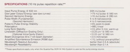 Ces 2 lasers à colorant SPECTRA PHYSICS PDL-3 j'ai pu les obtenir d'une université à LONDRES. Le laser PDL-3 peut-être pompé en haute énergie par un laser YAG doublé ou un laser à excimer.