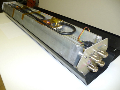 sandwiched in an extruded aluminium housing which provides mechanical support,