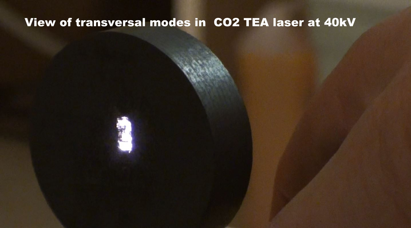 Le meilleur moyen de visualisé les modes transversaux d'un laser CO2 TEA émettant à 10.6 microns est de le faire impacter sur un bloc de carbone.