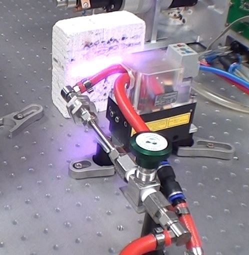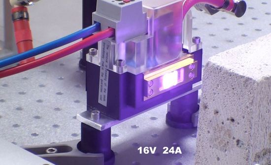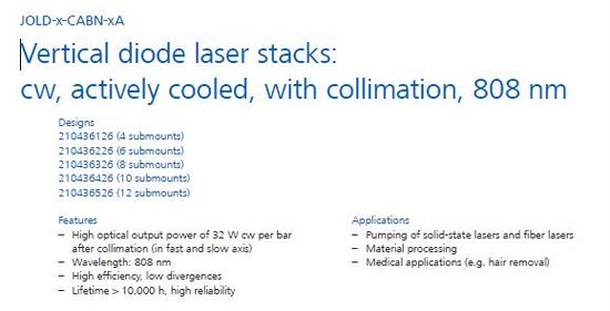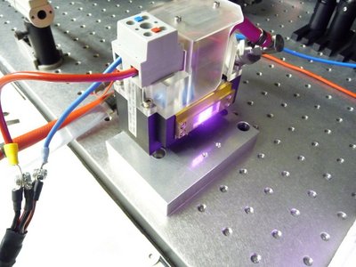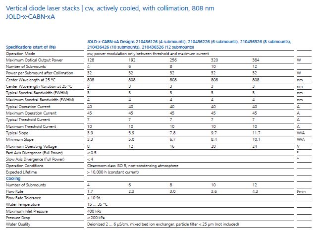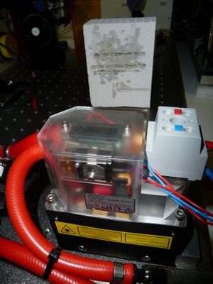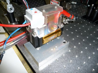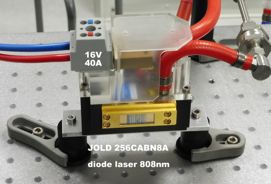 Diode laser JOLD256CABN8A.Ici je test cette diode de 256W cw. Je travail en mode qcw pour ne pas être au maximum et pour tester le régime impulsionel. Durée de pulse 0.5ms 720 pps à 105A soit 85W qcw = 212W cw!