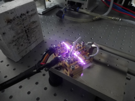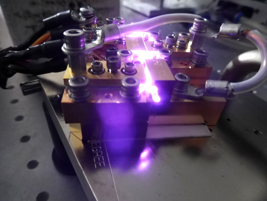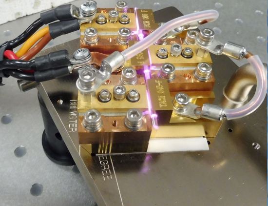 Teste de 3 diodes lasers utilisées pour le pompage en continu d'un barreau YAG dopé au chrome et au néodyme. Une future application est l'amplification en un passage de pulses nanosecondes.