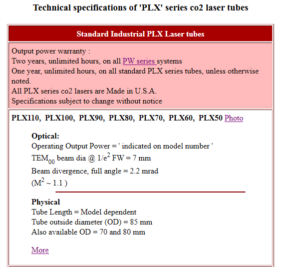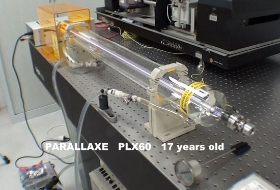 Laser CO2 de 60W de sortie TEM00 de fabrication Américaine PARALLAX Model PLX60.La qualité de ce tube est bien meilleure que les tubes Chinois bon marché que l'on trouve sur le commerce. Un tube de 60W coûtait 1850 $ dans les année 2000. Il me reste à trouver une alimentation pour faire fonctionner ce laser!