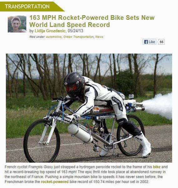 C’était limite mais l’essentiel est d’avoir rempli l’objectif. L’incroyable vitesse de 285 km/h a été atteinte en seulement 6,7 secondes ! Le quart de mile départ-arrêté a été parcouru en 7,3 secondes environ !!! Pas mal du tout pour unebicyclette, certes fortement dopée !