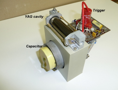 Ce laser ce compose d'un YAG:Nd de 6.3mm de diamètre pompé par un tube flash de 76mm de long et 4mm de diamètre intérieur.