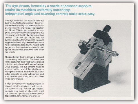 Jet ou cellule de colorant : le colorant Rhodamine 6G est normalement circulé (jet ou cellule) et dissous dans un solvant approprié (ex. éthanol), avec concentration et longueur effective de gain qui influencent l’efficacité et la largeur spectrale. Sirah Lasertechnik.