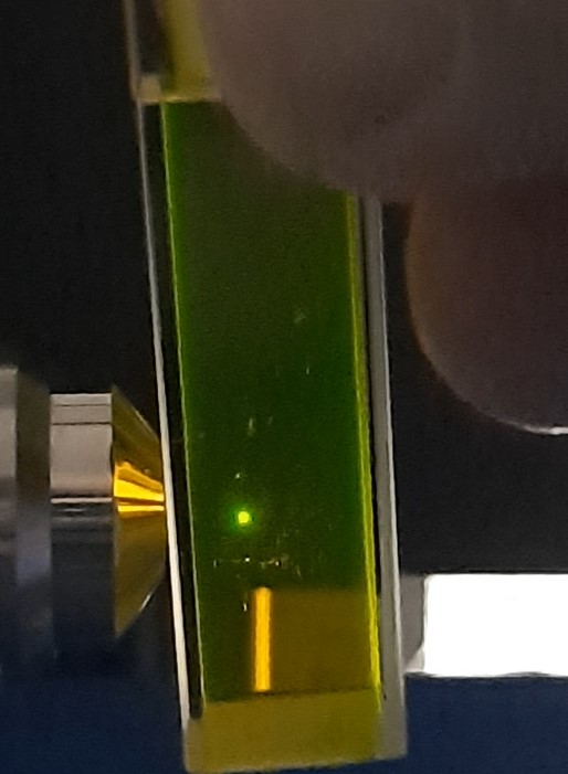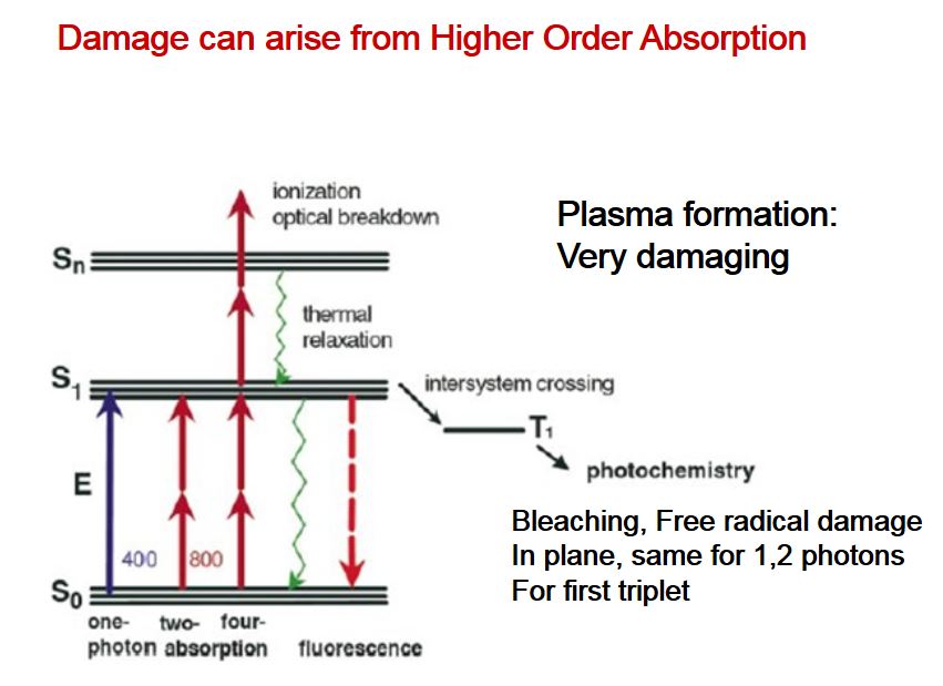 Quand la puissance crête est très grande la double absortion est suivi du claquage diélectrique du liquide contenant le colorant et il se forme une petite boule de plasma très lumineuse.