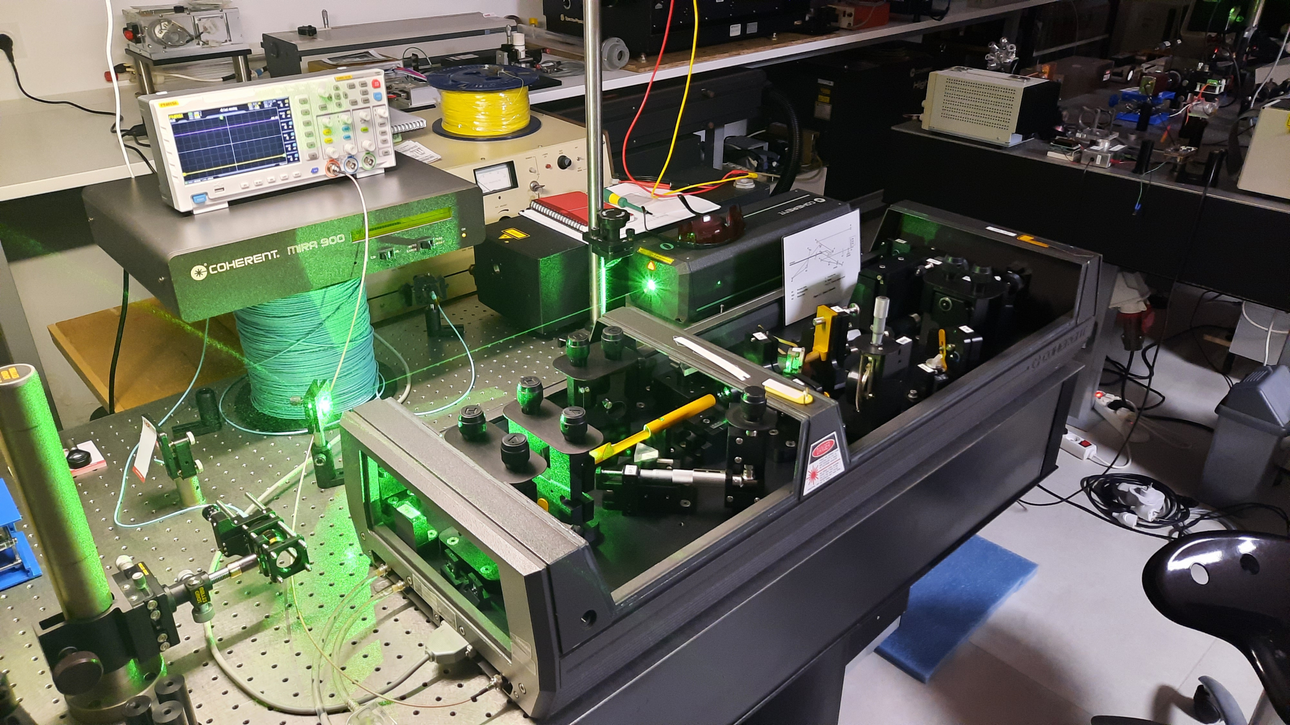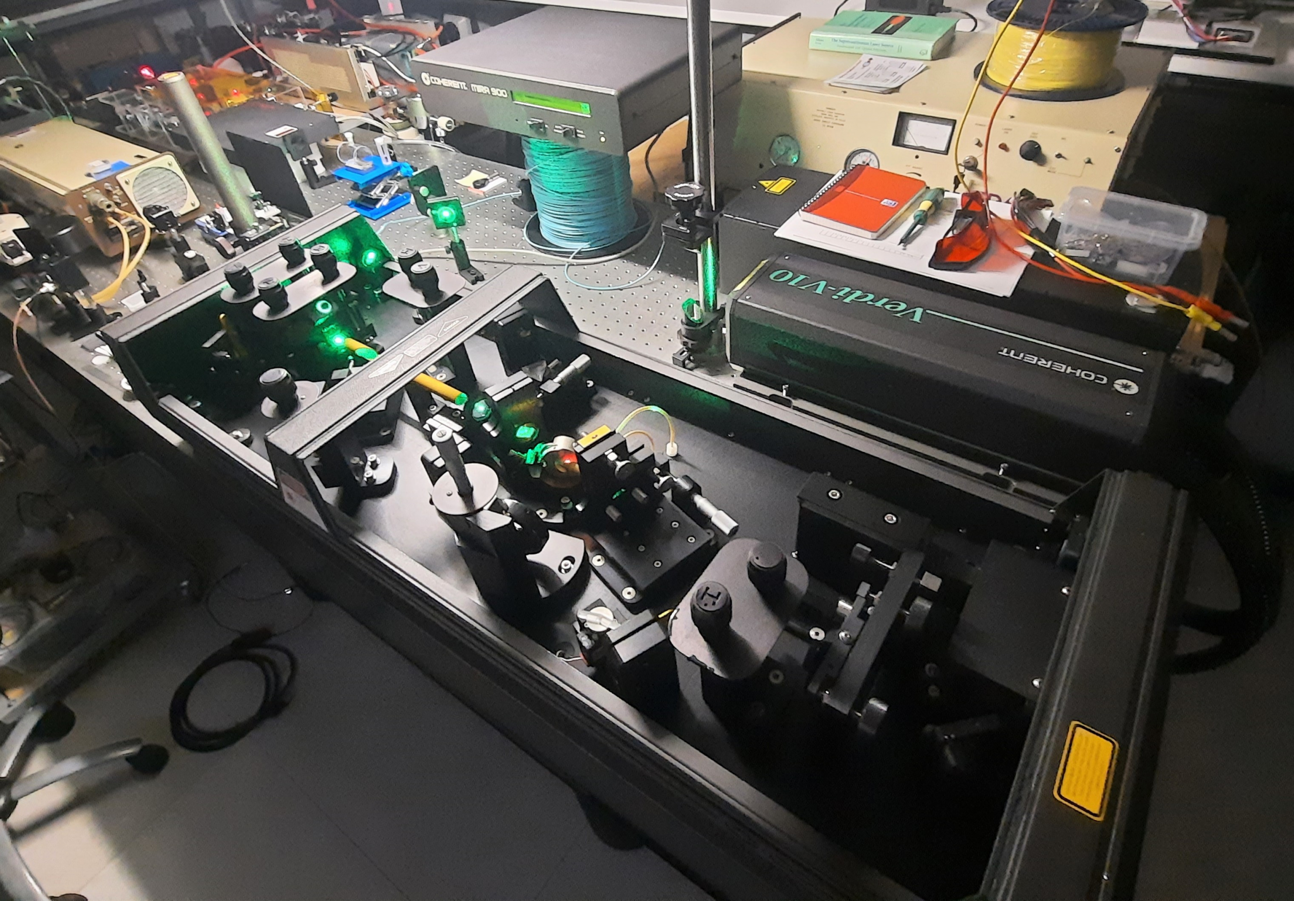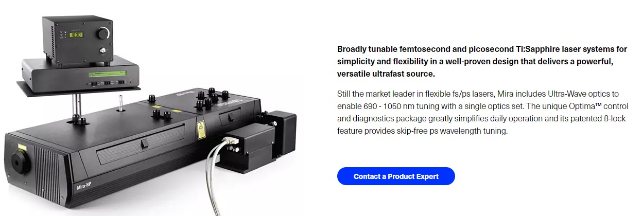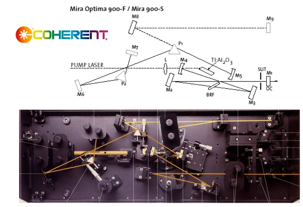 The Mira 900 is a Titanium Sapphire tunable femtosecond laser pumped by the Verdi V-10, 10 Watt pump.