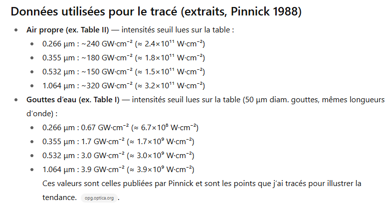 Le claquage optique est liée au phénomène de claquage qui a été étudié et modélisé avec succès vers la fin des années 1950. On décrit l’effet d’une forte ionisation locale du corps, lorsque le plasma atteint des densités au-delà de la valeur critique (entre 1020 et 1022 électrons / cm³).