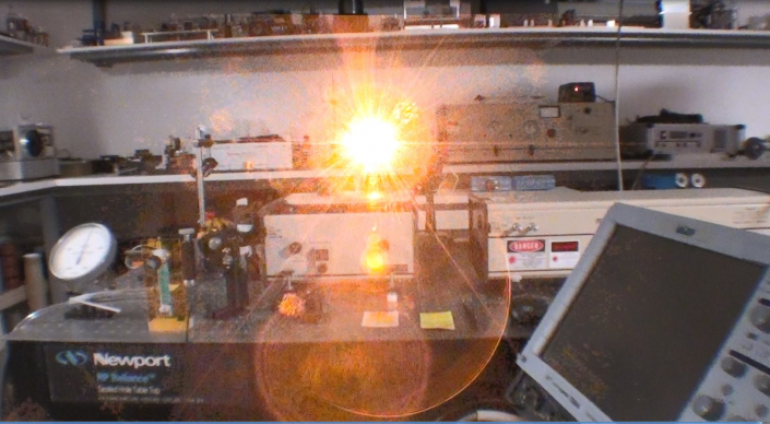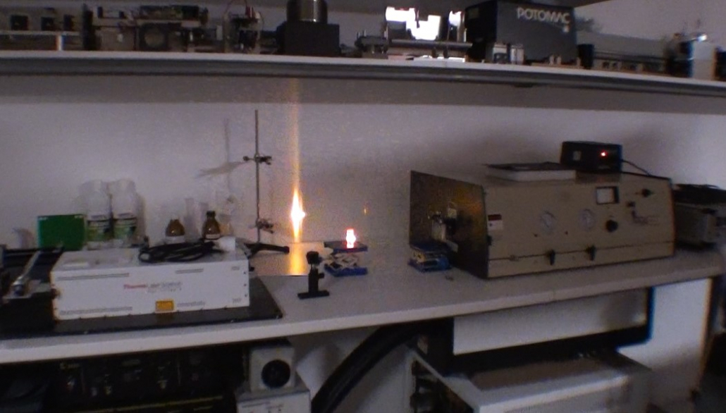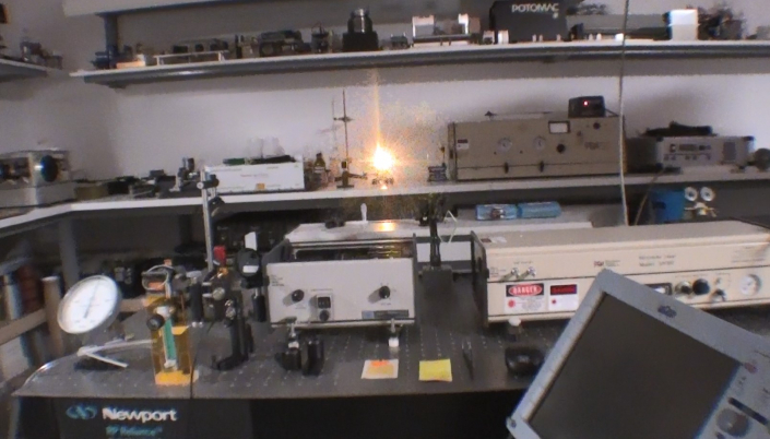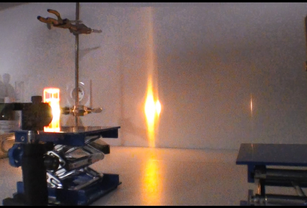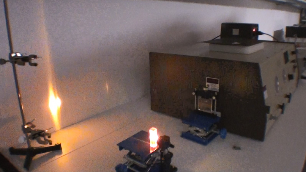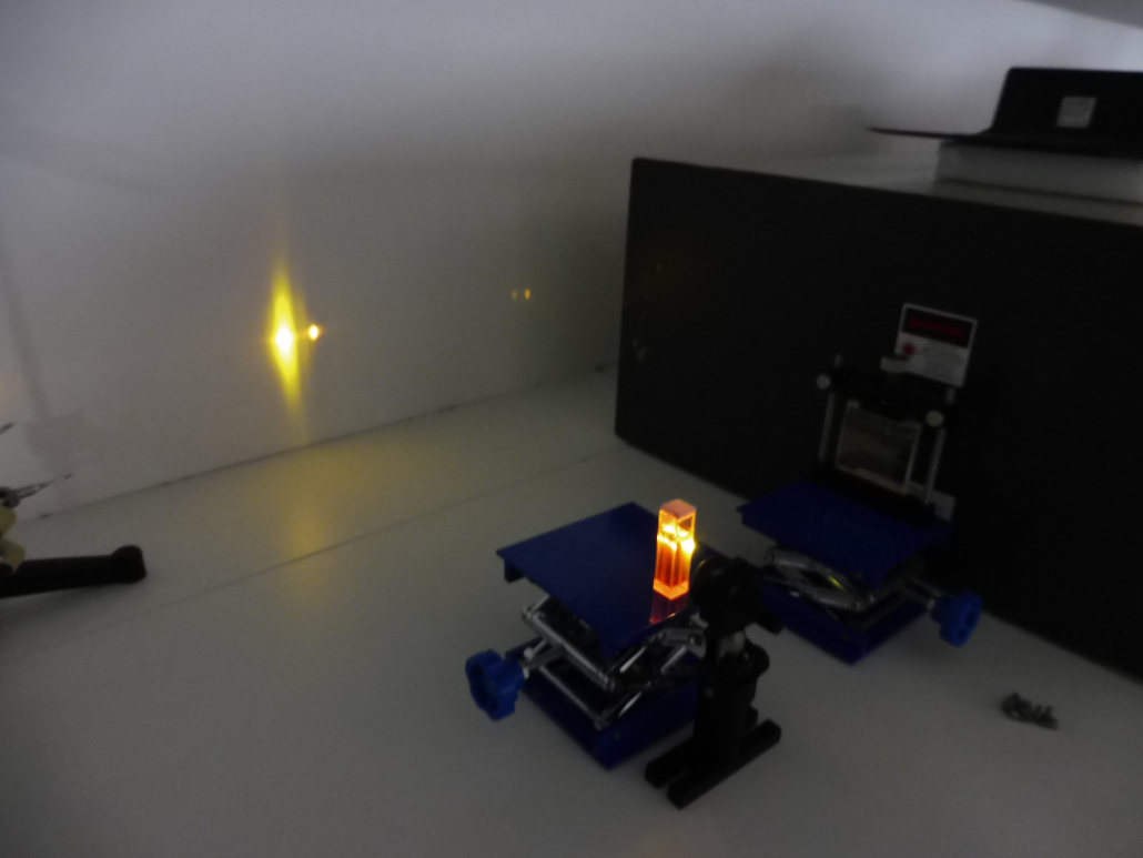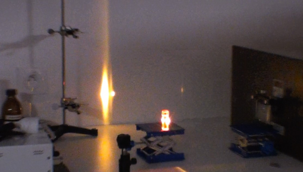 Focalisation dans une cuvette de colorant Rhodamine 6G à 0.001 Mol.