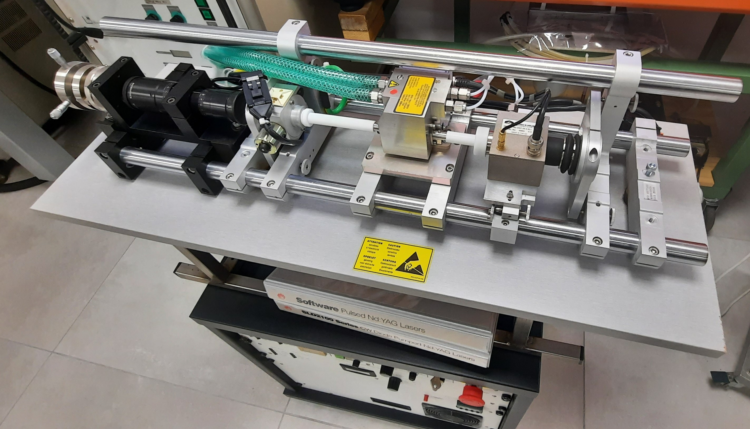Alimentation électrique et contrôle : bloc d’électronique de commande avec TTL/trigger externe pour synchronisation, menus d’ajustement d’énergie/répétition, protections de température. Litron