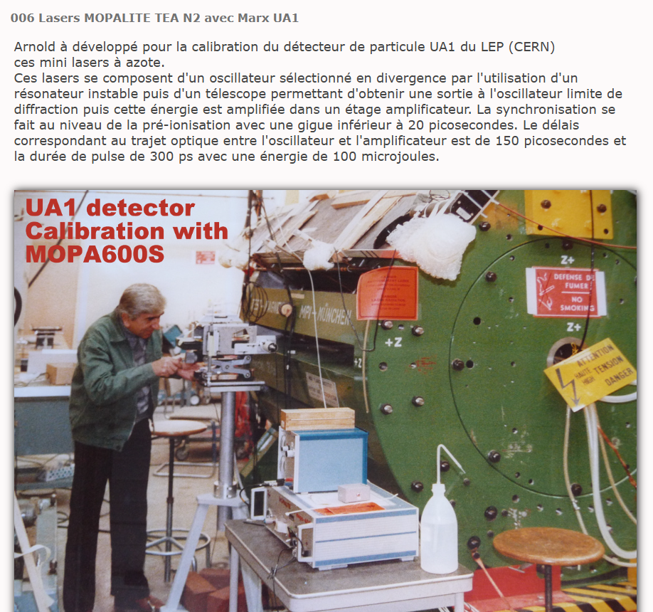 Le contrat 590 255/EF engageait Arnold Neracher, ingénieur spécialisé en lasers à gaz pulsés (TEA N₂, excités électriquement), à développer et fournir une série de lasers spécifiquement conçus pour répondre aux besoins du système UA1.
