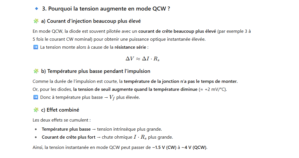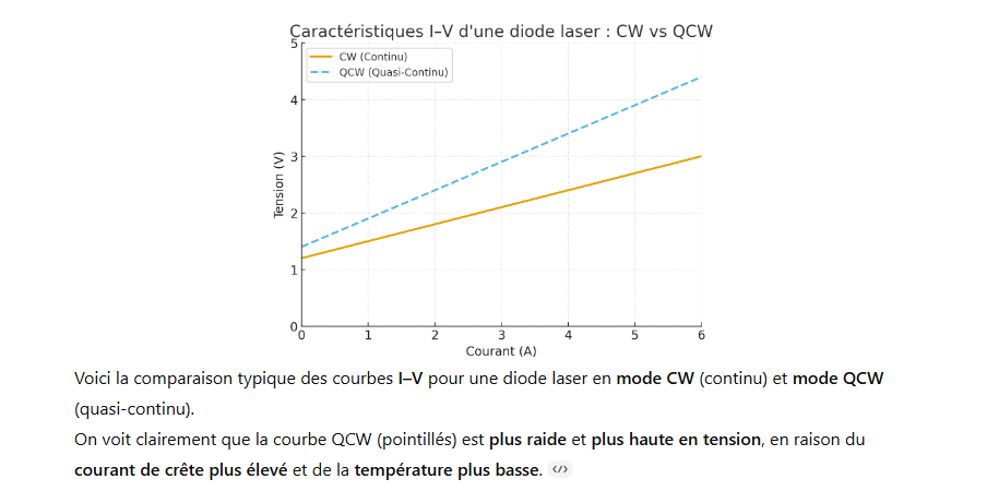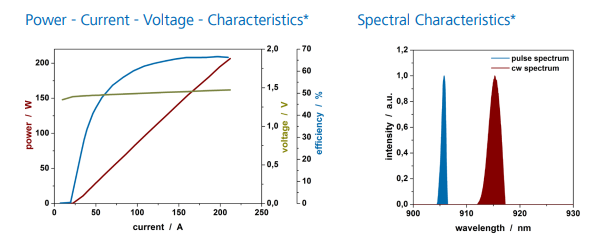 – Puissance de sortie optique élevée de 250 W qcw