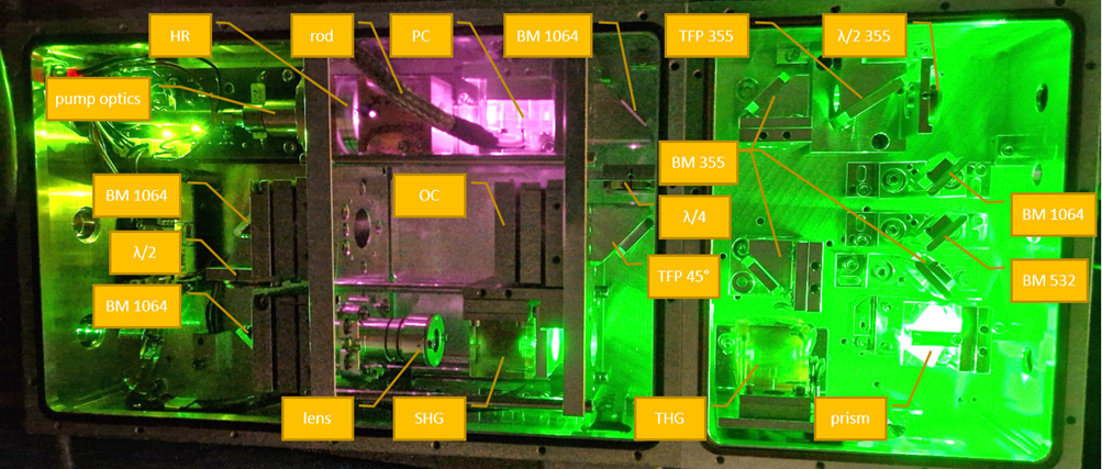 Version 355 : modèle avec génération harmonique pour émission UV à 355 nm (3e harmonique du 1064 nm).