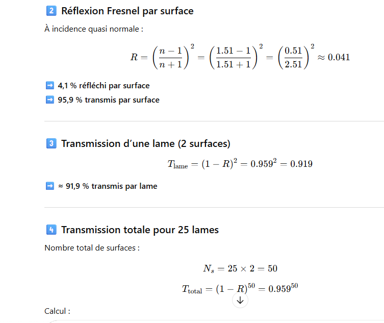 Le BD-5 exploite les réflexions de Fresnel sur des interfaces air–verre.