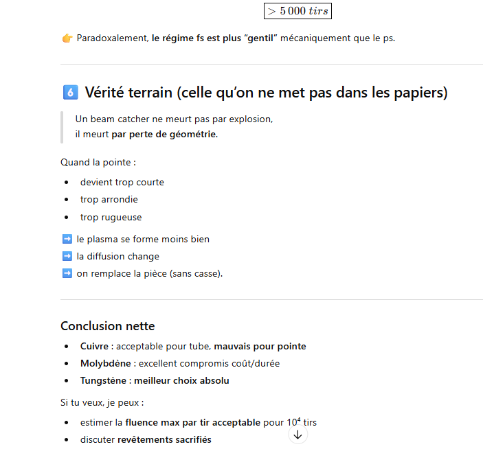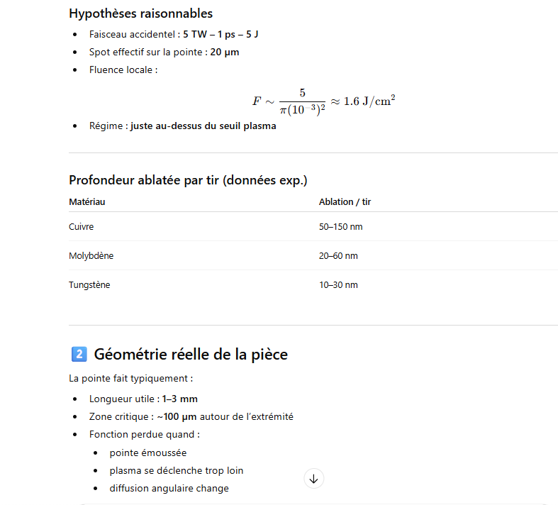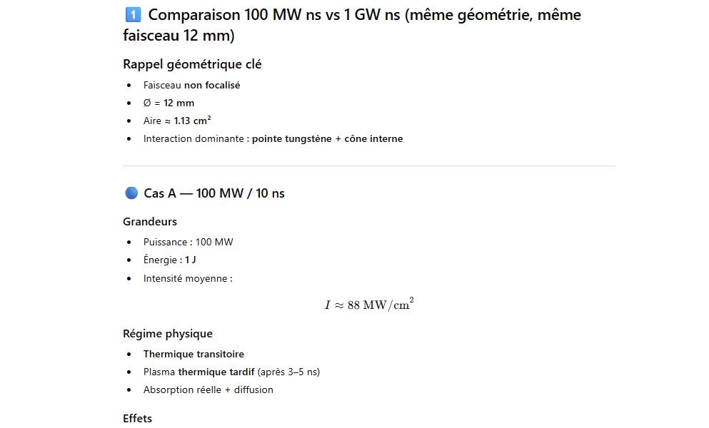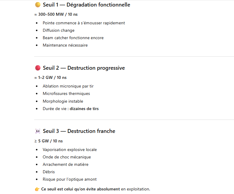 👉 Au-dessus de ces fluences, la surface devient plasma avant diffusion thermique.