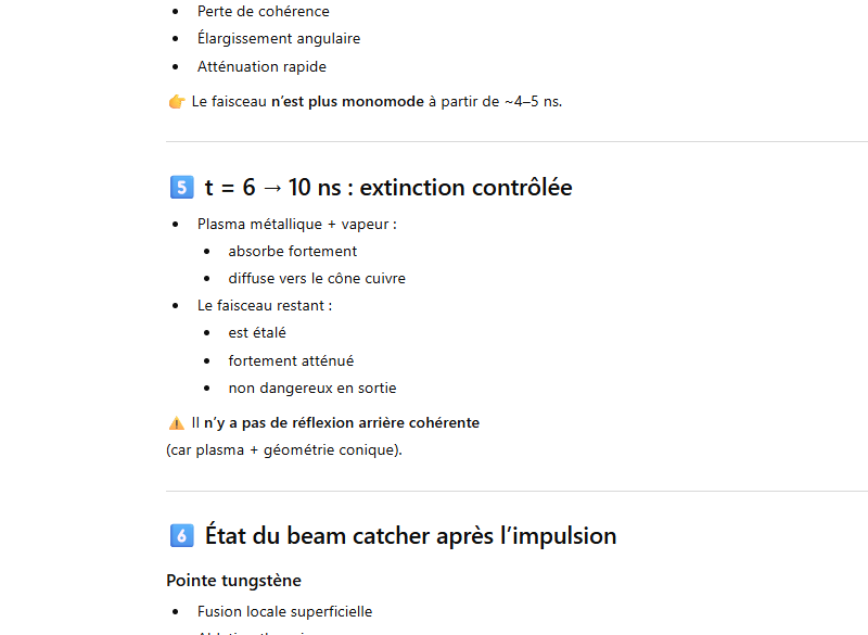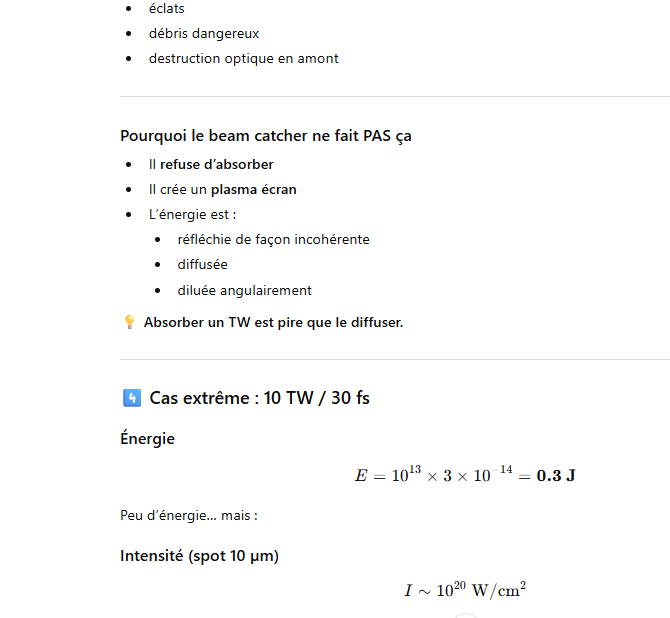 Un beam catcher arrête un faisceau TW non pas en l’absorbant, mais en le forçant à s’auto-éteindre dans un plasma qu’il génère lui-même.