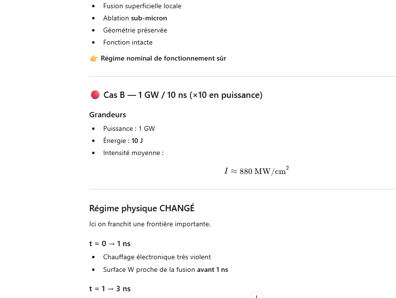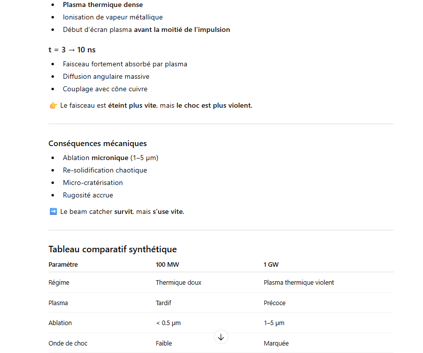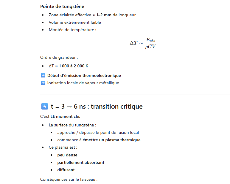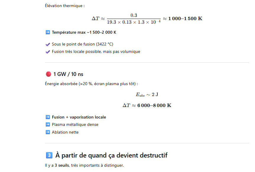 ➡️ Le matériau devient plasma dense avant tout échauffement macroscopique.
