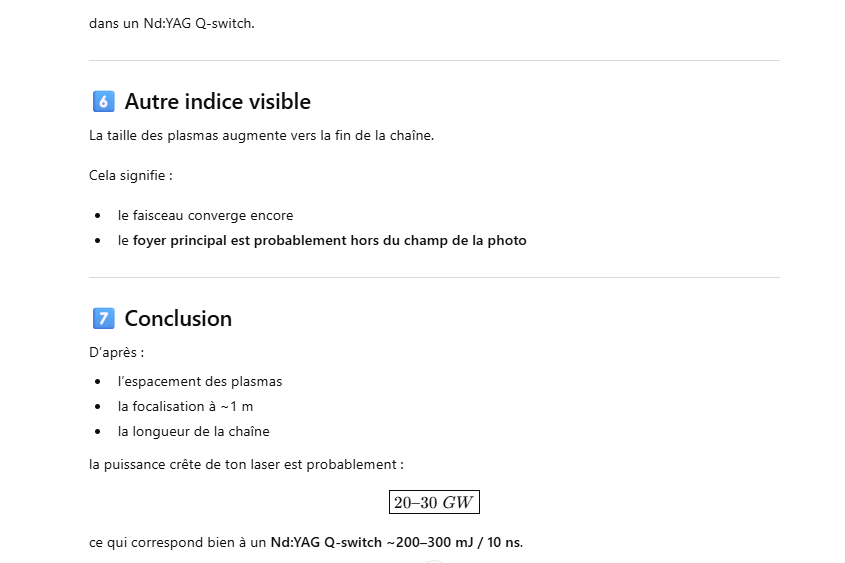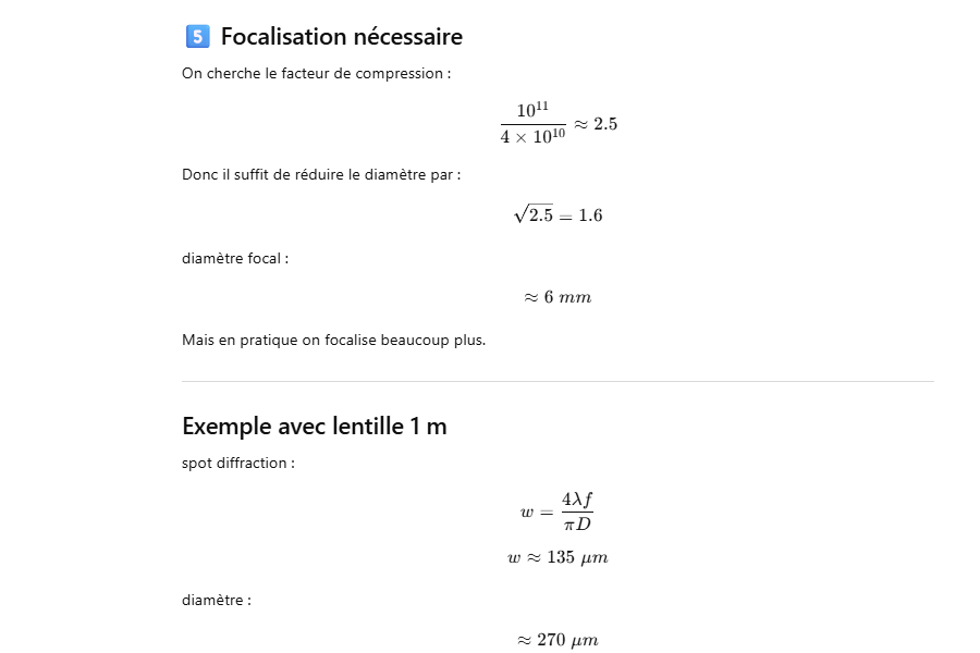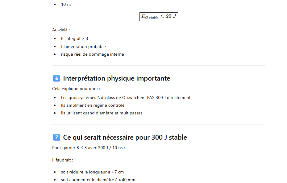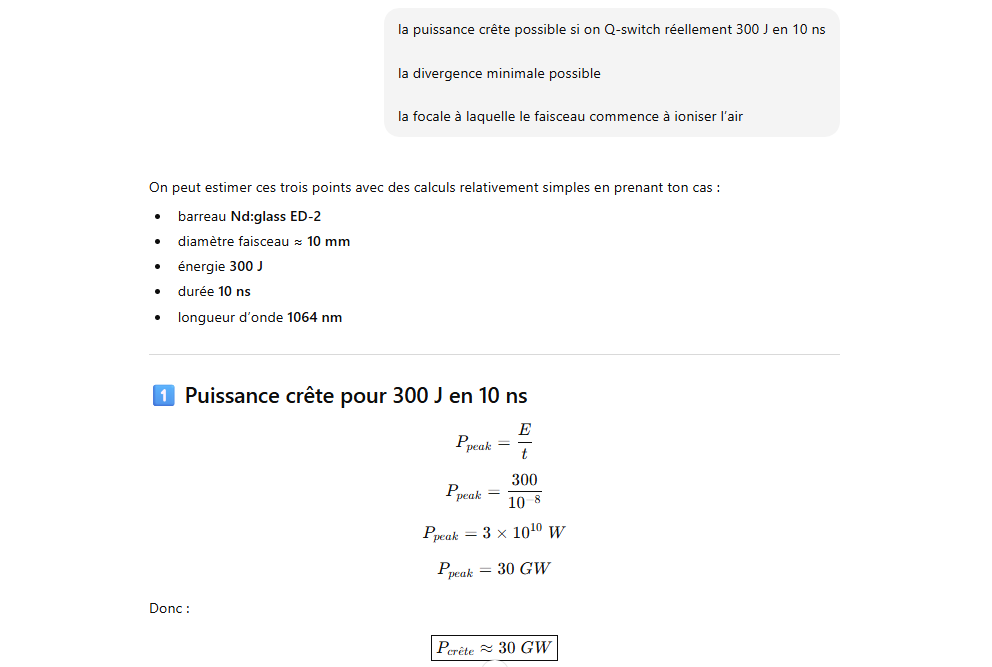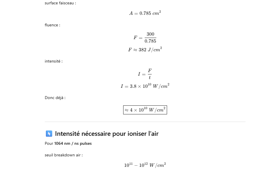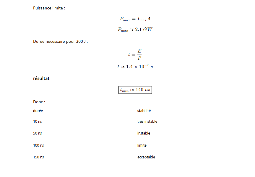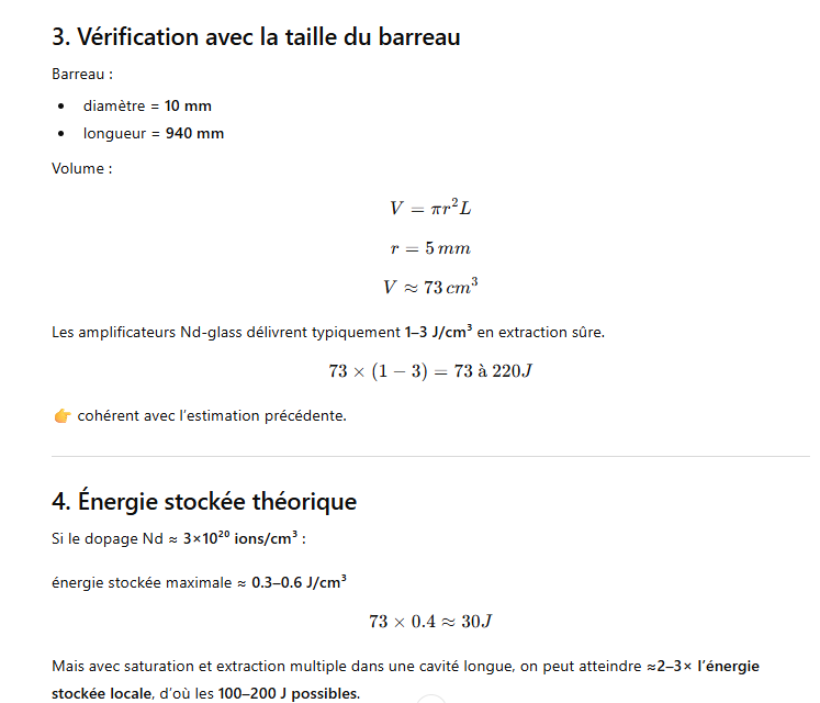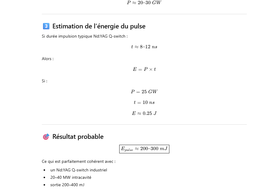 👉 Ordre de grandeur réaliste : 100–150 J par pulse.