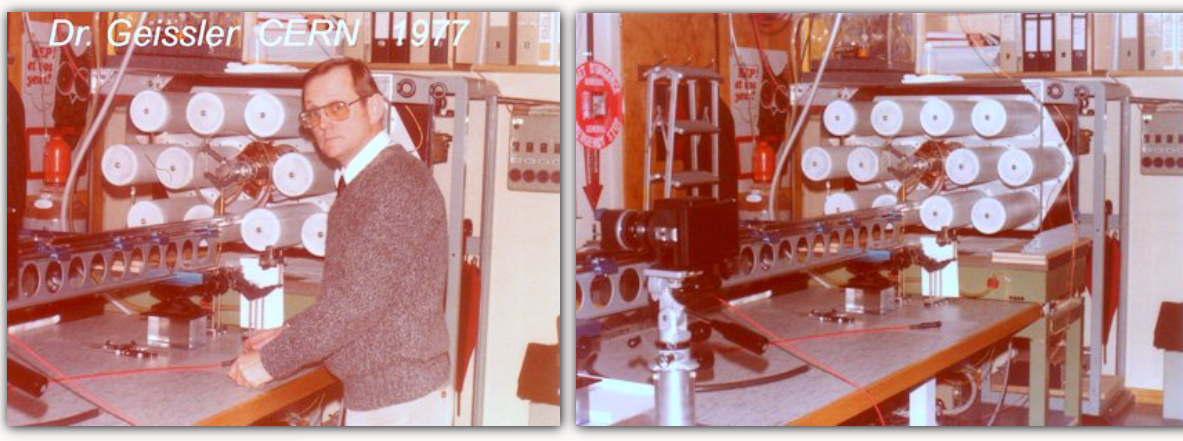 Une chambre à bulles est un détecteur de particules qui est formé d’une cuve contenant (généralement) de l’hydrogène liquide. La chambre étant généralement placée dans un champ magnétique important, la trajectoire de la particule est courbée. Son passage dans cette cuve se traduit par la formation le long de sa trajectoire de bulles, qui peuvent ensuite être photographiées. Les caractéristiques de la trajectoire (courbure, densité des bulles) permettent ensuite de déduire la masse et la charge de la particule.