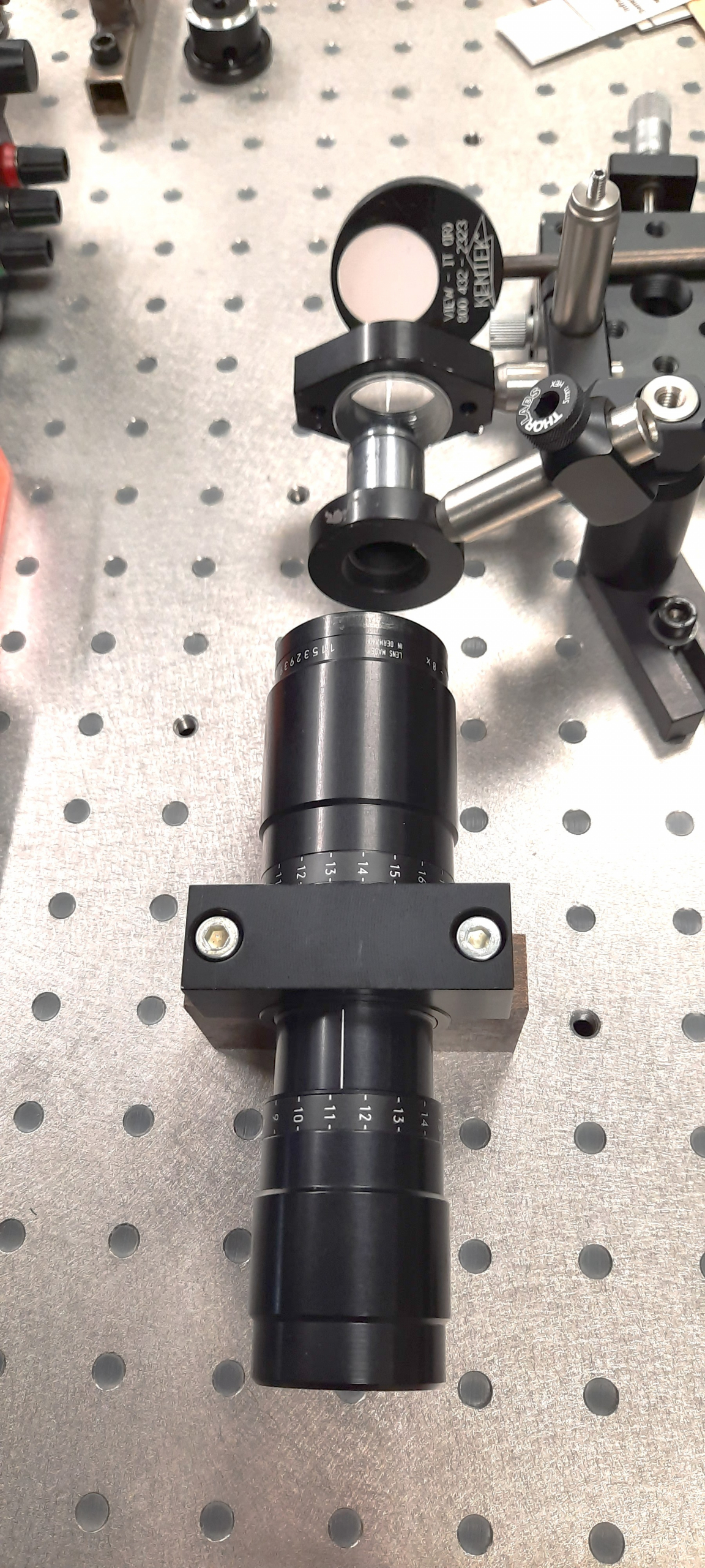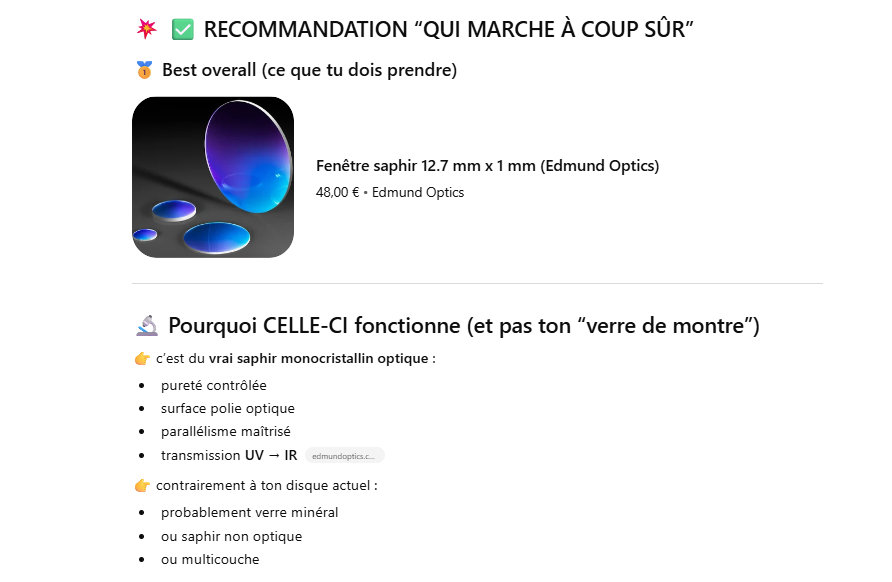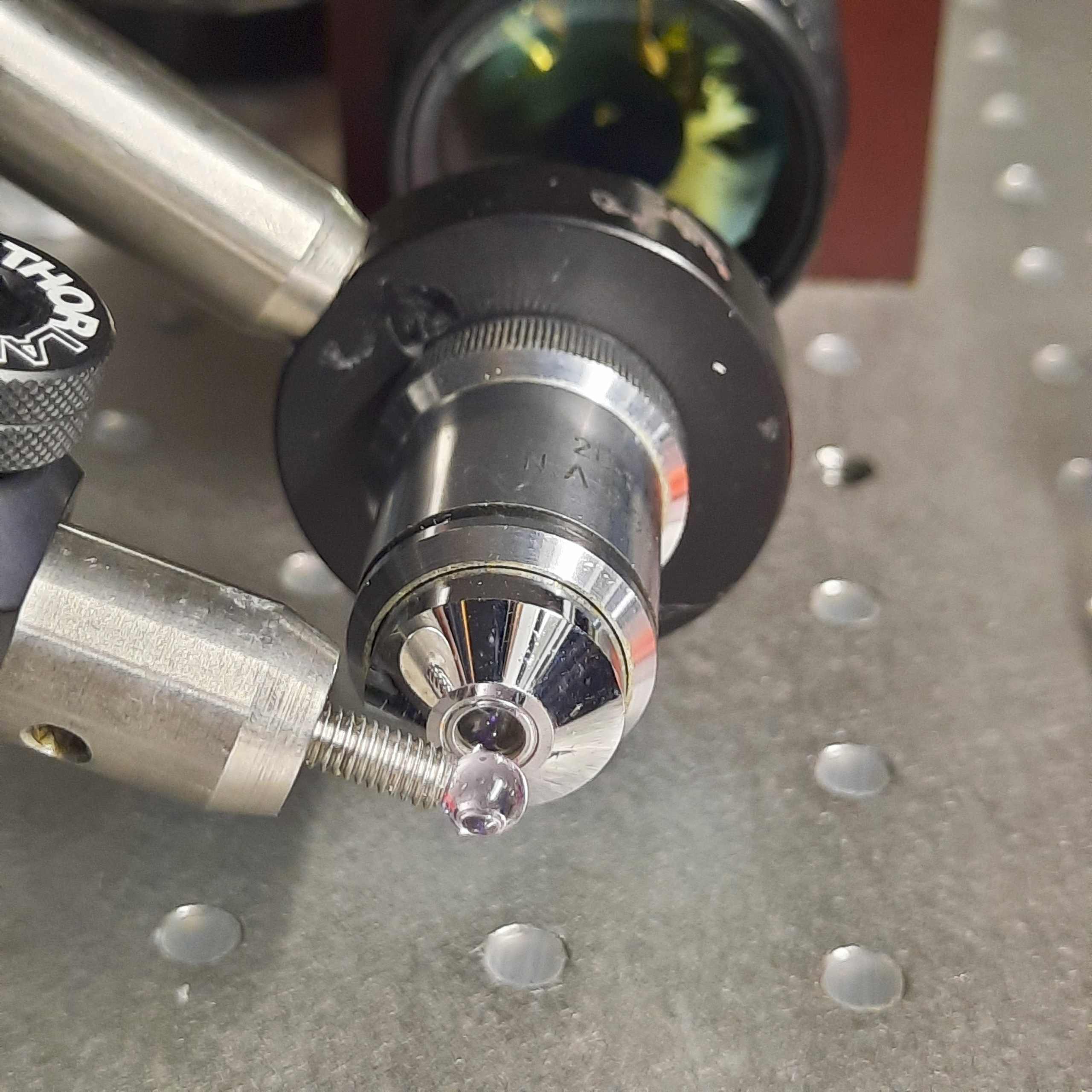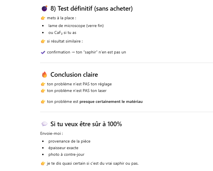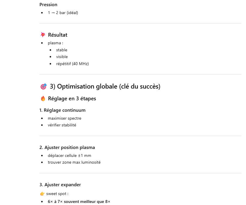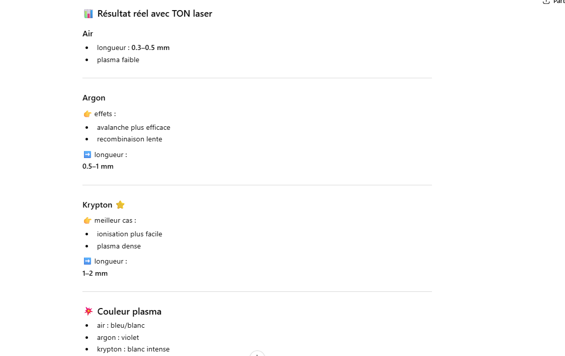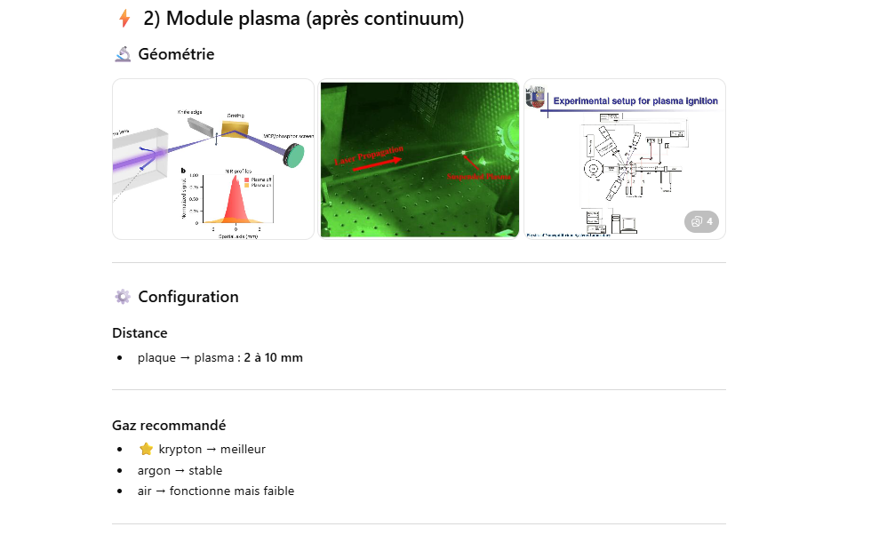 Le but de l’expérience est de créer un supercontinuum ( lumière blanche) en utilisant un laser femtoseconde ORIGAMI acheter sur Ebay USA pour 1000 euro sachant que le laser neuf coûte 120’000 euro! Le laser neuf donne 250mW et celui que j’ai acheter donne encore 100 mW. L’énergie par pulse est de 0.1W / 40 MHz ce qui donne 2.5 nJ en 200 fs soit 12.5 kW. Pour créer un supercontinuum il faut pour le YAG 10^13 W/cm2 donc il faut focalisé cette énergie sur un spot de 4 micron carré!
