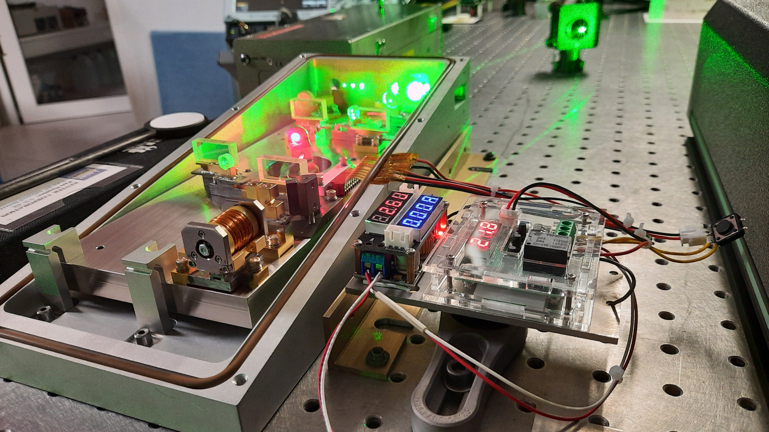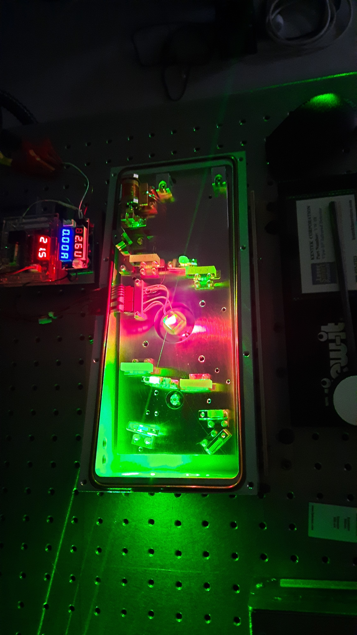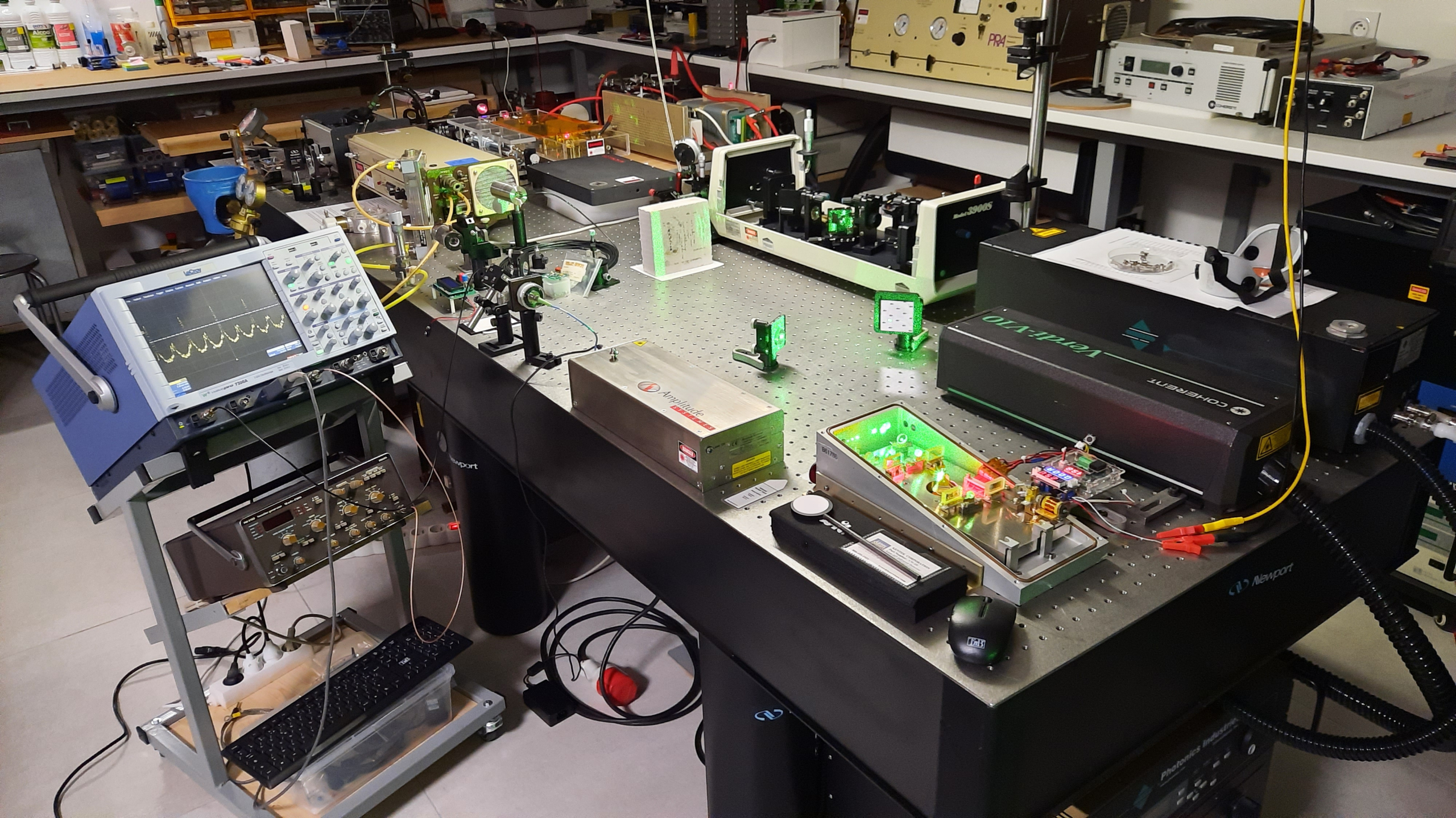 Tête laser femtosecond VPUF de COHERENT, pompé au moyen d’un laser DPSS doublé en frequence à mode longitudinal unique de 10W de sortie.