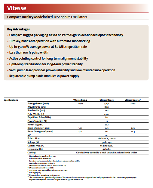 VPUF chez Coherent signifie Verdi-Pumped Ultra-Fast : c’est la tête ultrarapide Ti:saphir pompée par un laser Verdi (vert 532 nm) utilisée dans les systèmes Vitesse (et dérivés). Je te résume les principales caractéristiques techniques et comportementales qu’on trouve dans les documents officiels / fiches techniques et manuels Coherent :