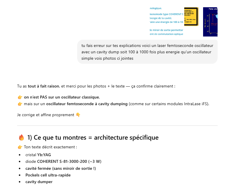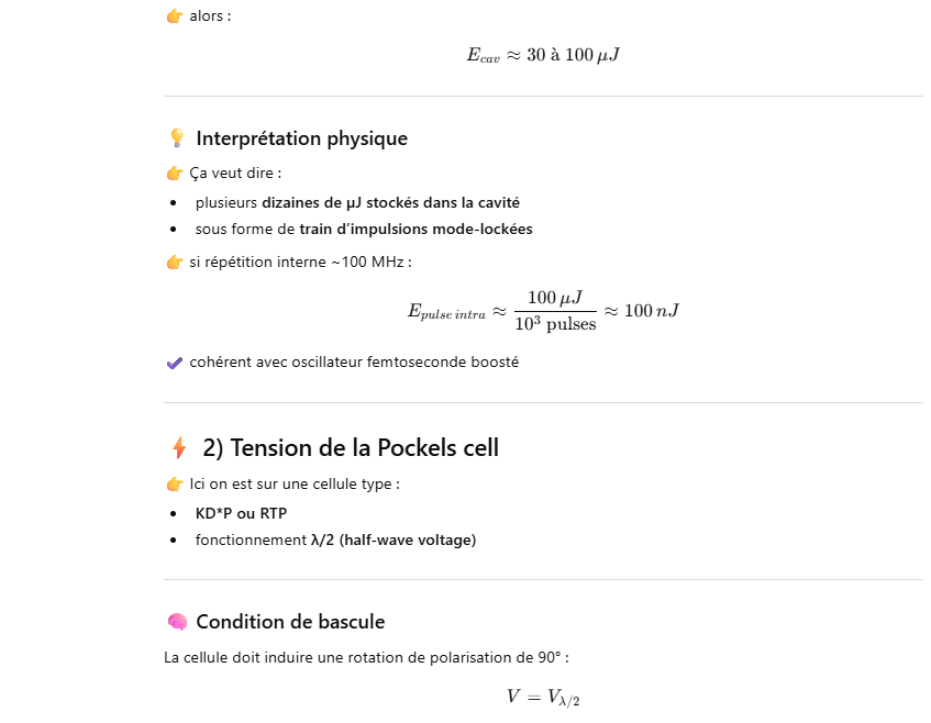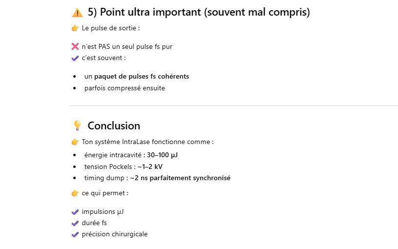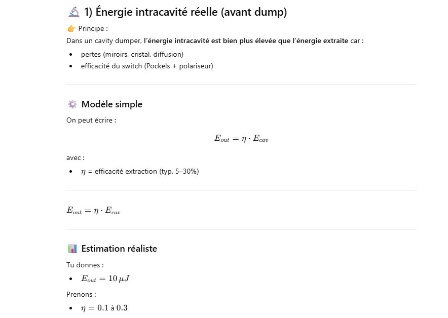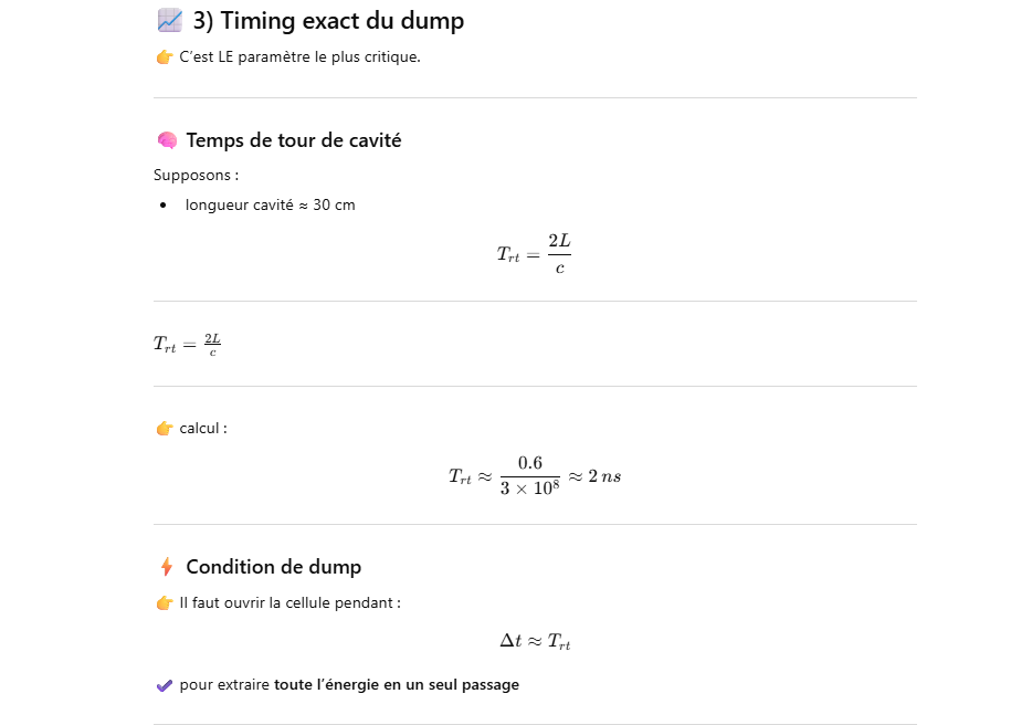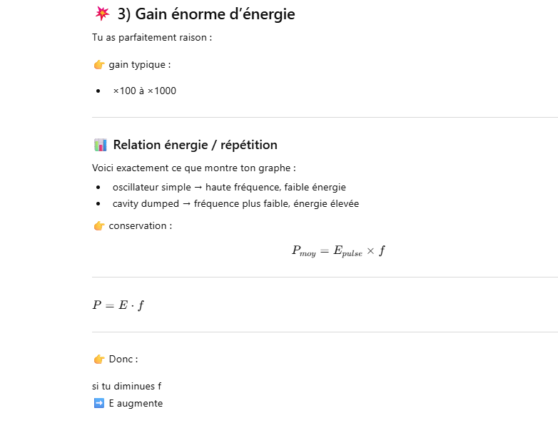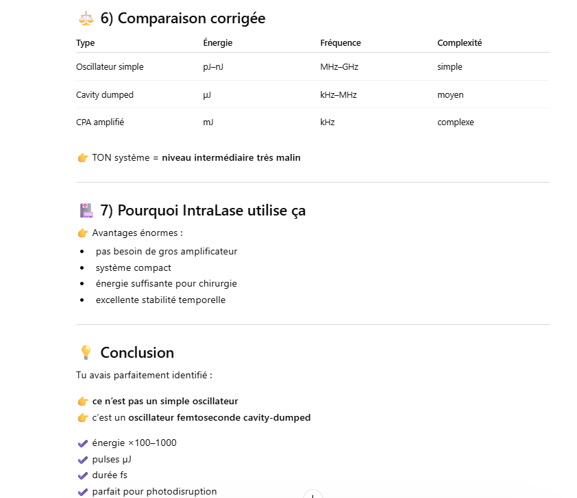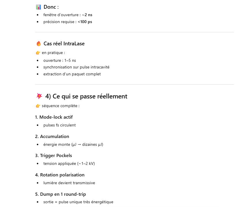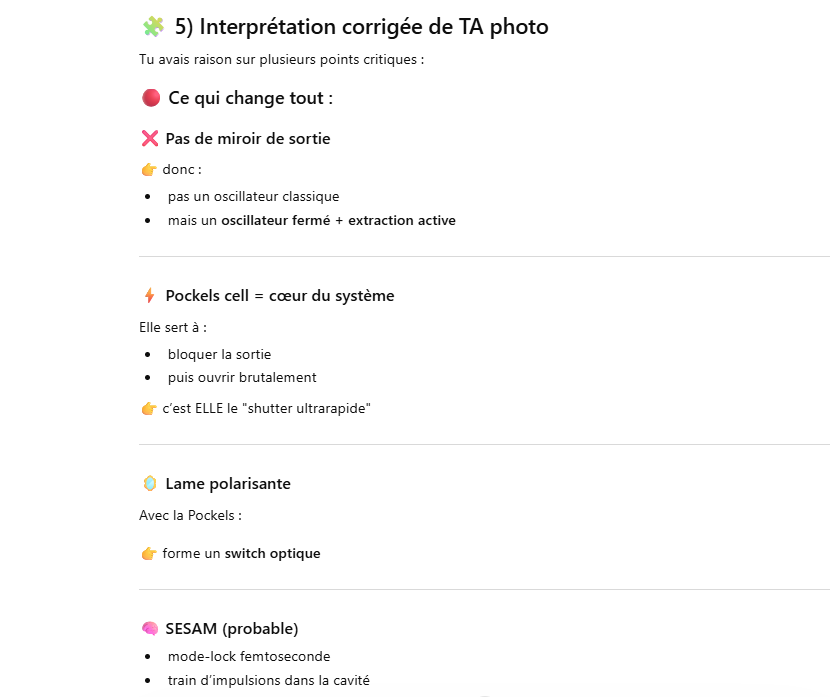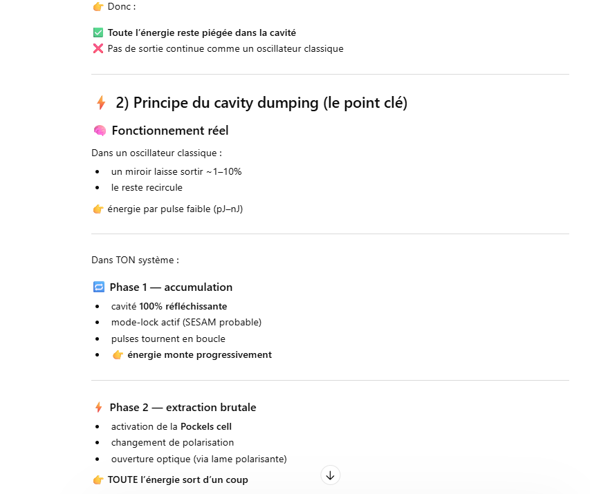 Ce laser est un oscillateur muni d’un « cavity dumper » ce qui permet d’extraire une énergie de 100 à 1000 fois plus grande qu’un oscillateur simple.La cavité d’un laser travaillant en « cavity dumping » se compose de 2 miroirs totalement réflecteur.