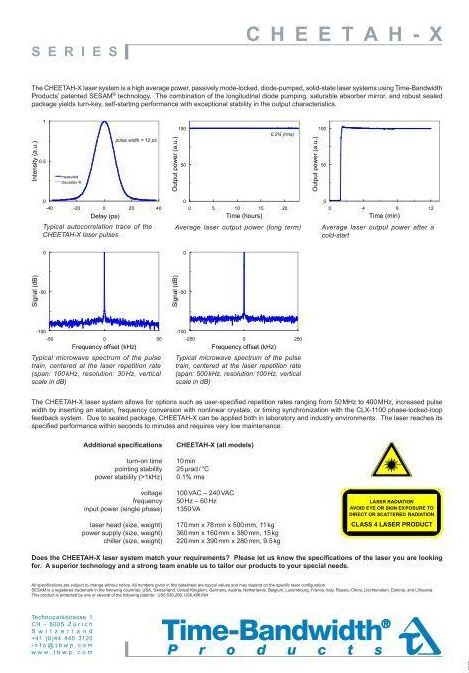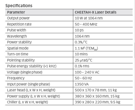 LASER PICOSECONDE CHEETAH de TIME&BANDWIDTH